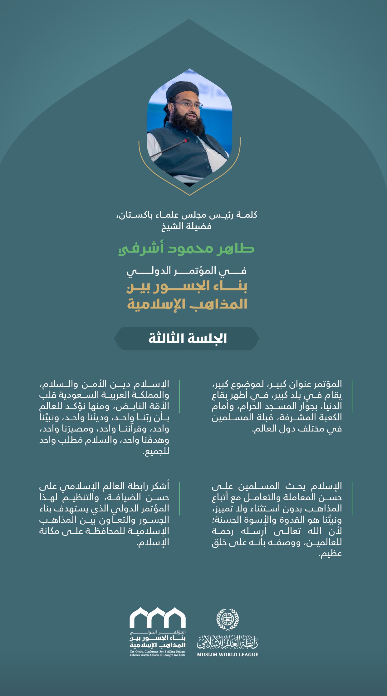 مقتطفات من كلمة فضيلة رئيس مجلس علماء باكستان، الشيخ طاهر محمود أشرفي، خلال المؤتمر الدولي: "بناء الجسور بين المذاهب الإسلامية":