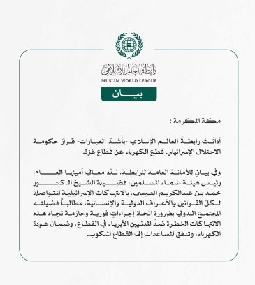 وفي بيانٍ للأمانة العامة، ثمَّن معالي الأمين العام، رئيس هيئة علماء المسلمين، فضيلة الشيخ الدكتور محمد بن عبدالكريم العيسى، هذه المُبادرة الكريمة غير المُستغربة من قِيادة المملكة العربية السعودية التي طالما وقَفَتْ في الظروف الصعبة والمُلِمَّاتِ سَنَداً وعَضُداً لأشقَّائِها مِن الدُّول العربية والإسلامية بخاصة والعمل الإنساني بعامة، سائلاً المولى -سبحانه وتعالى- أن يُجزِل مثوبةَ خادم الحرمين الشريفين، وسمو ولي عهده الأمين -أيّدهما الله-.