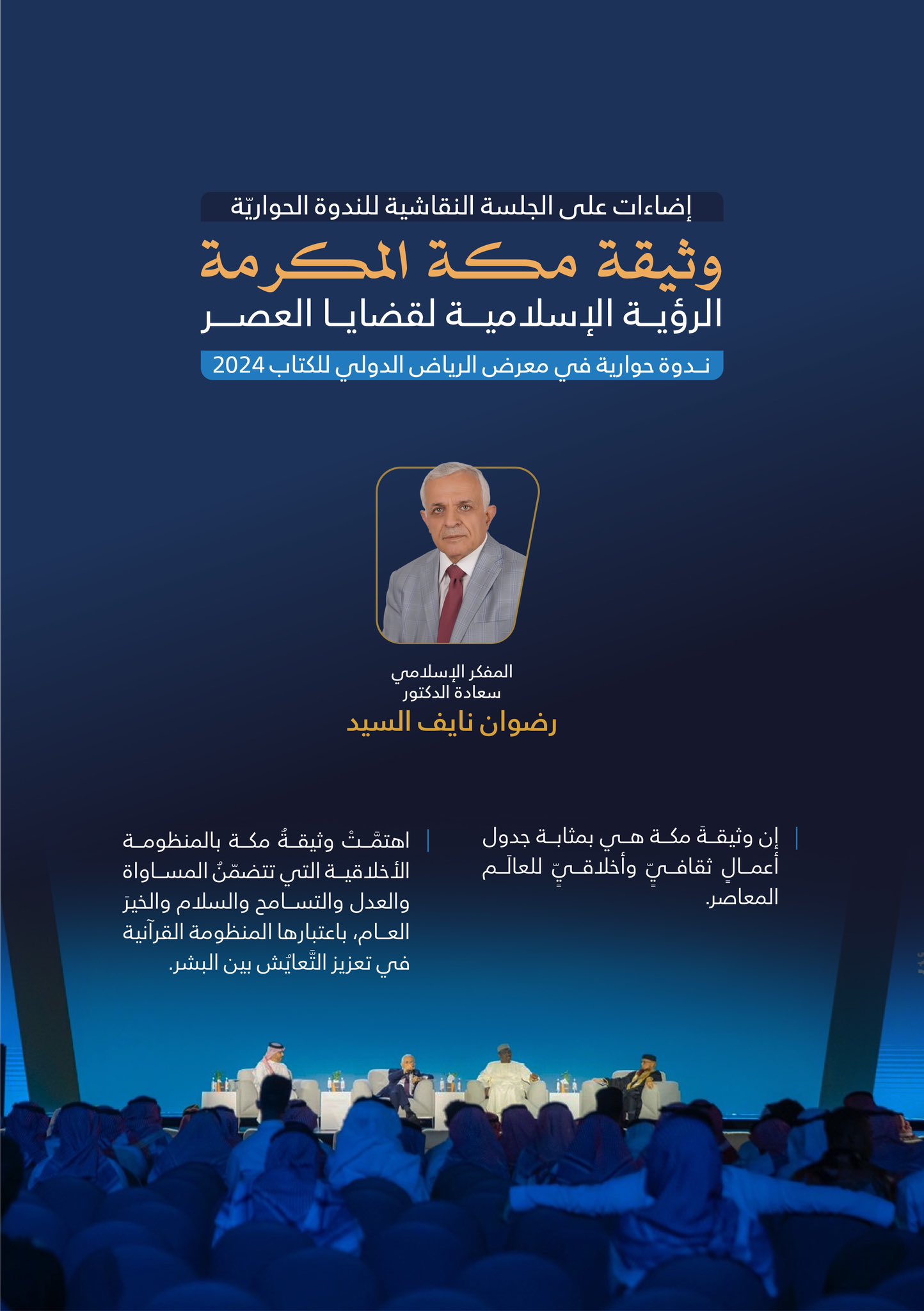 المُفَكِّرُ الإسلاميّ، د. رضوان نايف السيد، مشاركًا في النَّدوة الحِواريَّة التي نظّمها معرض الرياض الدولي للكتاب 2024 عن وثيقة مكة المكرمة (الرؤية الإسلامية لقضايا العصر)