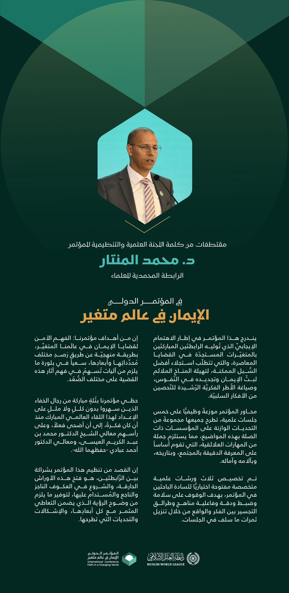 ‏مقتطفات من كلمة اللجنة العلمية والتنظيمية للمؤتمر، والتي ألقاها د. محمد المنتار، من الرابطة المحمدية للعلماء، في المؤتمر الدولي: "الإيمان في عالمٍ متغيّر":