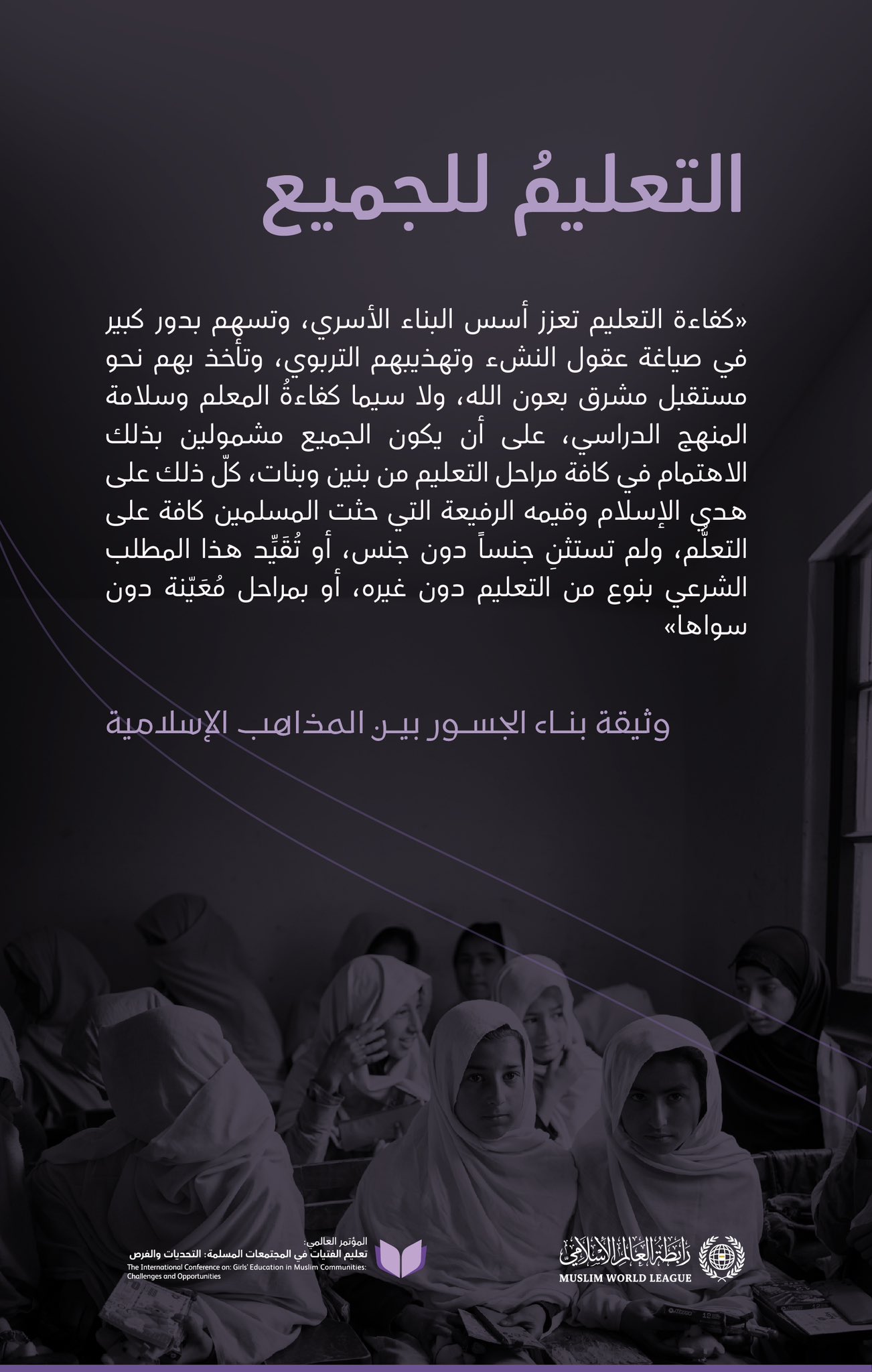 حقُّ التعليم للجميع من دون تمييز، الذي أقرَّته "وثيقة بناء الجسور بين المذاهب الإسلامية" بإجماعٍ منقطِع النظير من كافّة التنوّع الإسلامي