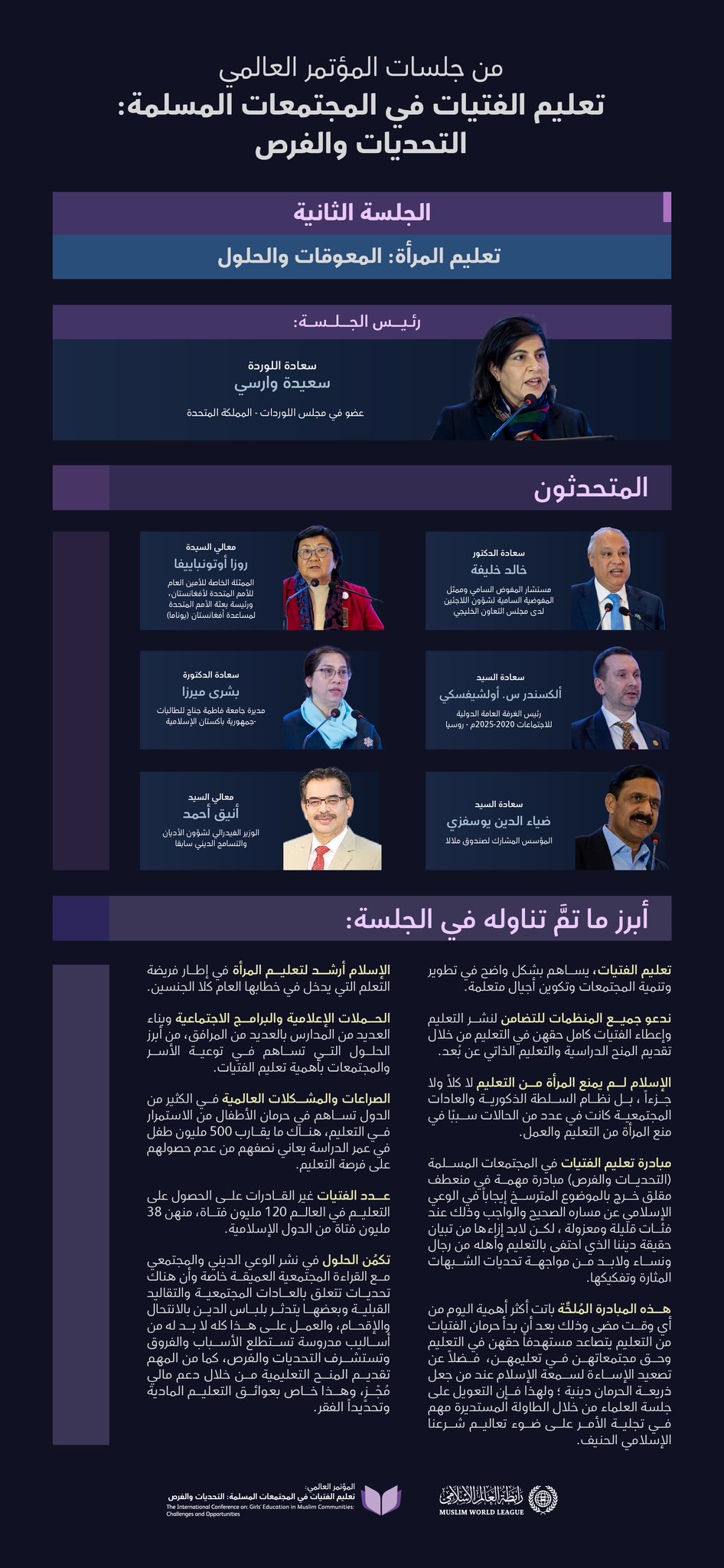 نتعرّفُ على أبرز ما تناولته الجلسةُ الثانيةُ في مبادرة تعليم الفتيات في المُجتمعات المُسلمة من أفكارٍ، وأهمّ المُخرَجات: