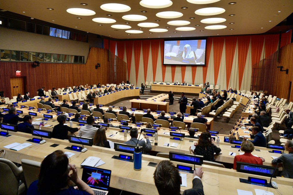 معالي الشيخ د. محمد العيسى مفتتحاً قمة القيادة المسؤولة بمقر الأمم المتحدة في نيويورك: للقيادة المسؤولة أهمية محورية إذ يرتبط بها تحقيق أهدافنا الوطنية والأممية والإنسانية عموماً
