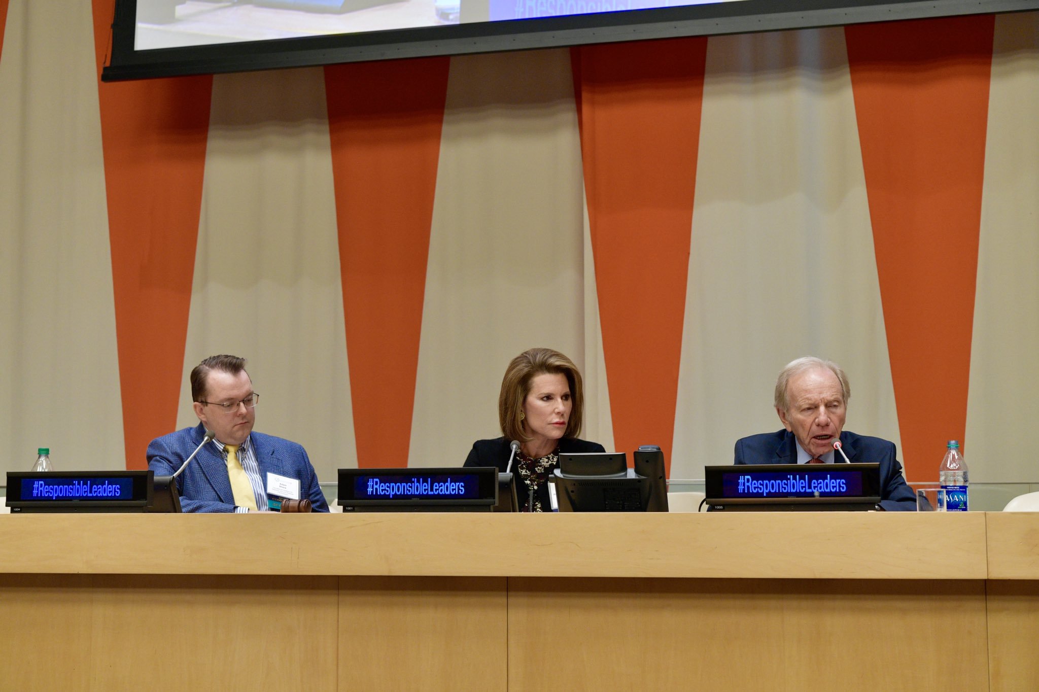السيناتور الامريكي الشهير ومرشح الرئاسة السابق جوزيف ليبرمان متحدثاً في مؤتمر رابطة العالم الإسلامي بـ الأمم المتحدة عن القيادة المسؤولة