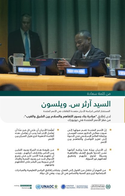 ‏إشادات وتفاعل القيادات الدولية تحت مظلة الأمم المتحدة بنيويورك مع مبادرة ⁧‫رابطة العالم الإسلامي‬⁩: "بناء جسور التفاهم والسلام بين الشرق والغرب":