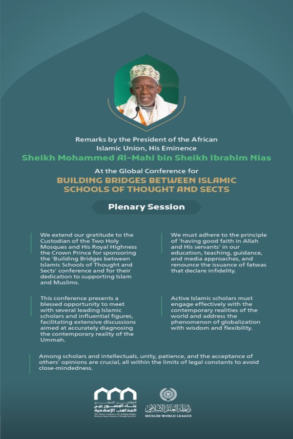 Remarks by His Eminence Sheikh Mohammed Al-Mahi bin Sheikh Ibrahim Nias, President of the African Islamic Union, at the Global Conference for…