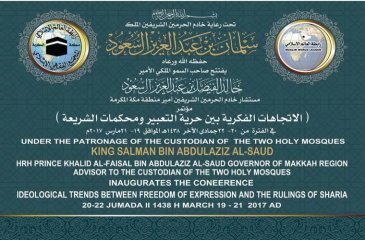 After due profound thank to Al-lah Almighty for His bounties to us and for facilitating the conduct of this significant Islamic Confer-ence and for the gathering of this unique elite, I have to record my profound thank to Custodian of the Two Holy Mosques King Salman bin Abdulaziz Al-Saud for his kind patronage of this august Confer-ence and for his liberal support for the activities of the Muslim World League in general and the Islamic Fiqh Council in particular as well as for his honourable attitude to-wards the Islamic causes and his good offices in enhancing the unity of Muslim Ummah. I would like also to thank HRH Prince Khalid Al-Faisal Al-Saud for inaugurating this Conference and for delivering the speech of the Monarch.