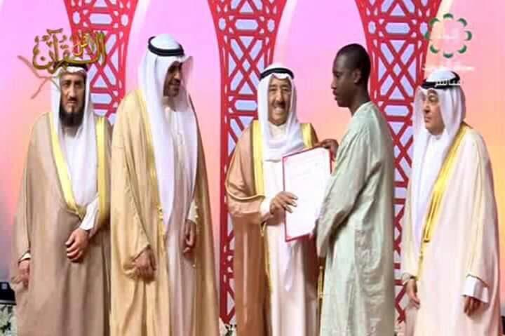 Three competitors of the MWL's Organization for Memorizing Quran won 1st 2nd & 3rd place in Kuwait competition; the Emir gave them prizes.