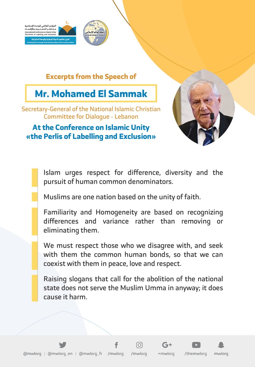 Mr. Mohamed El Sammak addresses 1200 Islamic Figures from 127 Countries representing 28 Islamic Components at the MWL conference on Islamic Unity: Perlis of Labeling & Exclusion, held in Makkah under the Patronage of the Custodian of The Two Holy Mosques. Muslim Makkah Conference