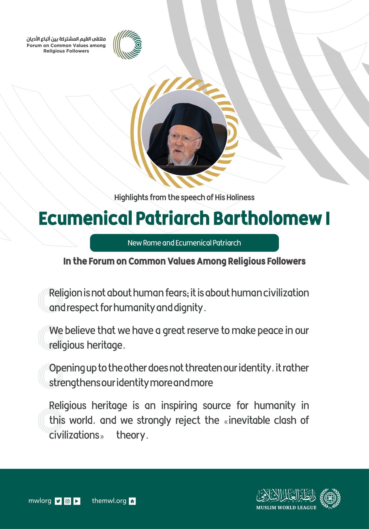 Highlights from the speech of His Holiness Ecumenical Patriarch Bartholomew I in the Forum on Common Values Among Religious Followers in Riyadh: