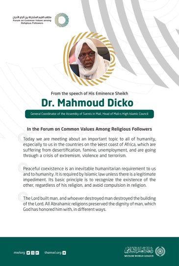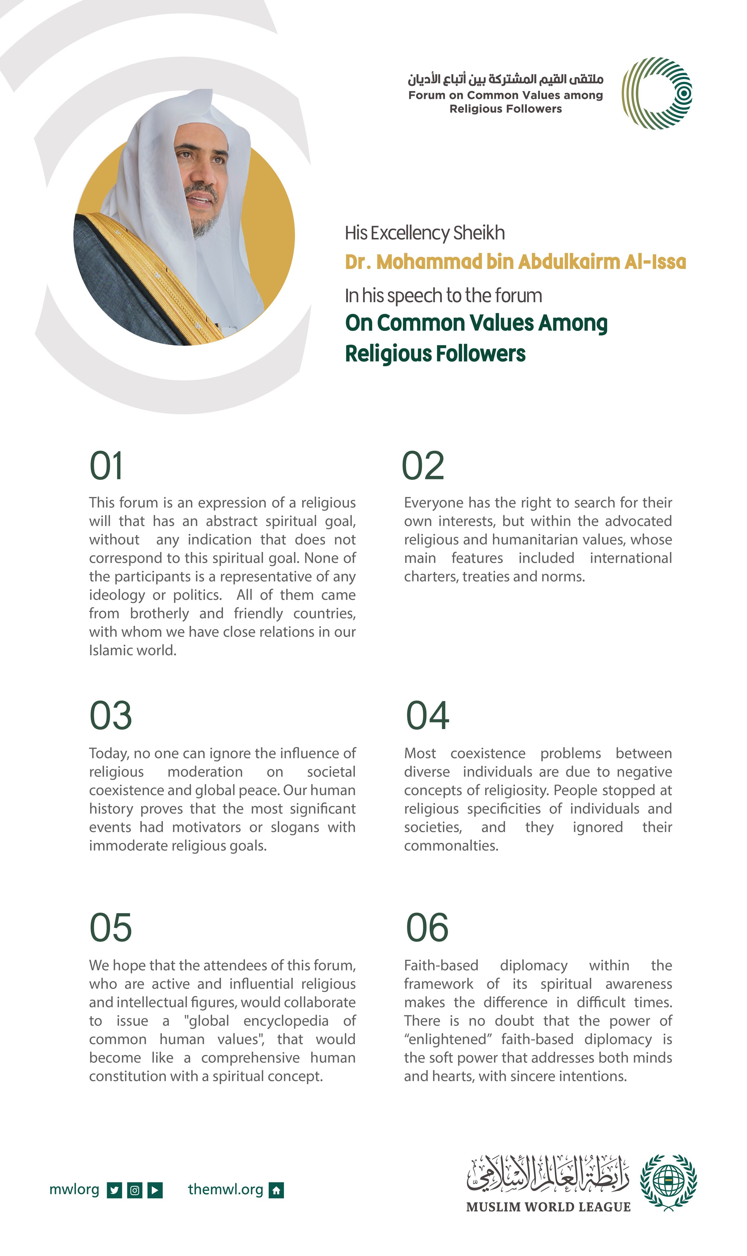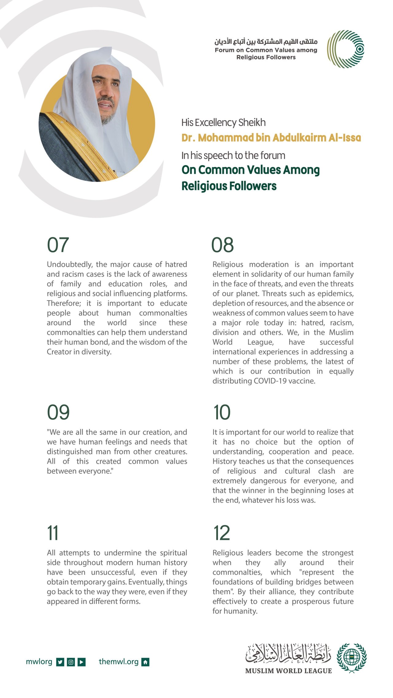 His Excellency Sheikh Dr. Mohammad bin Abdulkarim Al-Issa in the opening speech in the Forum on Common Values Among Religious Followers in Riyadh: FaithsForPeace