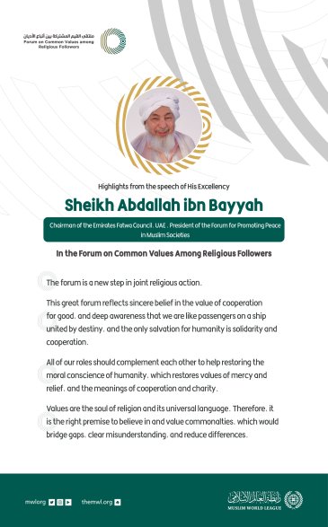 From the speech of the Head of the Sunni Endowment Diwan - Iraq, Sheikh Abdul Khaliq Al-Azzawi, in the Forum on Common Values Among Religious Followers in Riyadh: