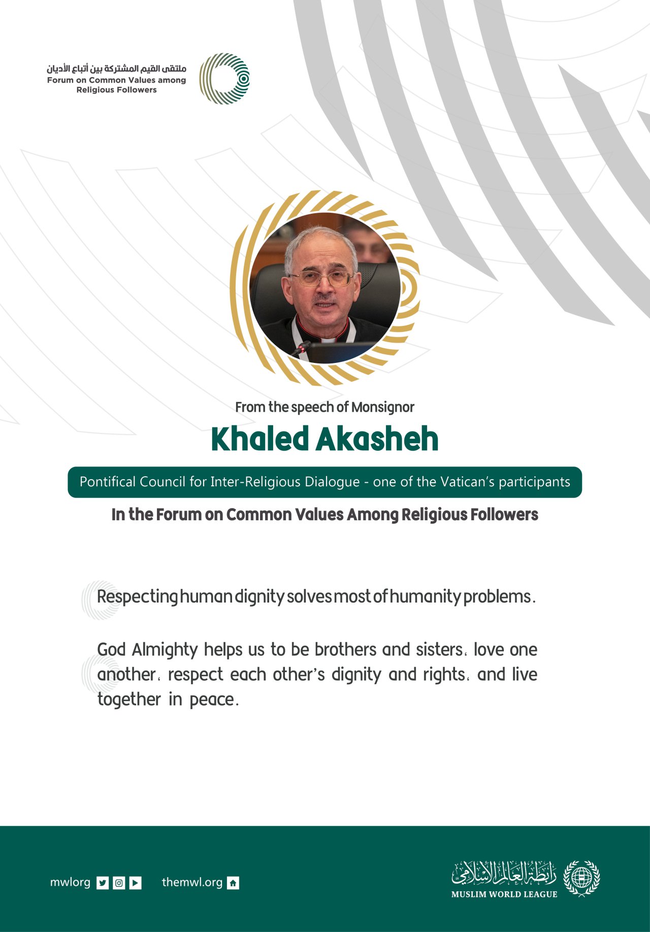 From the speech of Monsignor Khaled Akasheh, Pontifical Council for Inter-Religious Dialogue - one of the Vatican’s participants, in the Forum on Common Values Among Religious Followers in Riyadh: