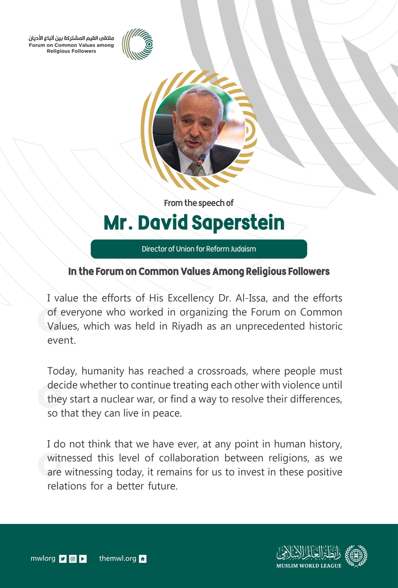 From the speech of the Director of Union for Reform Judaism, Mr. David Saperstein, in the Forum on Common Values Among Religious Followers in Riyadh:
