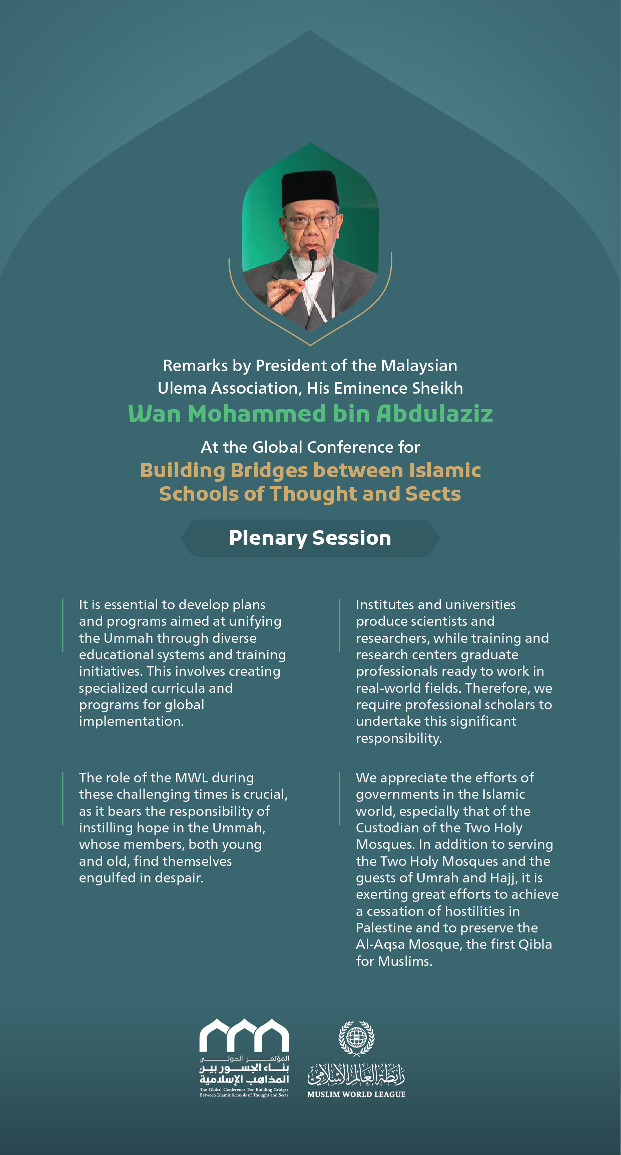 Remarks by His Eminence Sheikh Wan Mohammed bin Abdulaziz, President of the Malaysian Ulema Association at the Global Conference for Building Bridges between Islamic Schools of Thought and Sects.