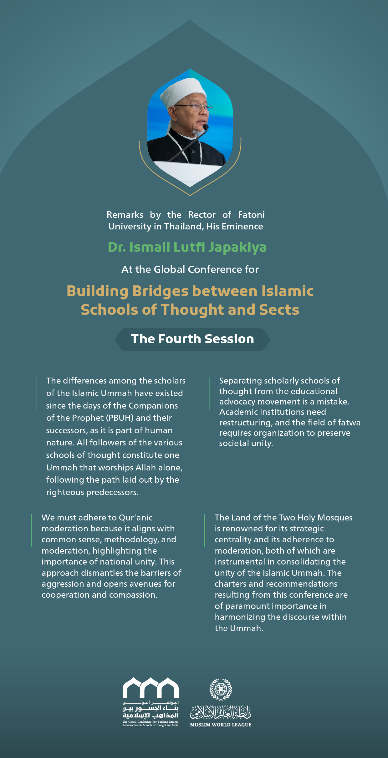 Remarks by His Eminence Dr. Ismail Lutfi Japakiya, the Rector of Fatoni University in Thailand, at the Global Conference for Building Bridges between Islamic Schools of Thought and Sects.