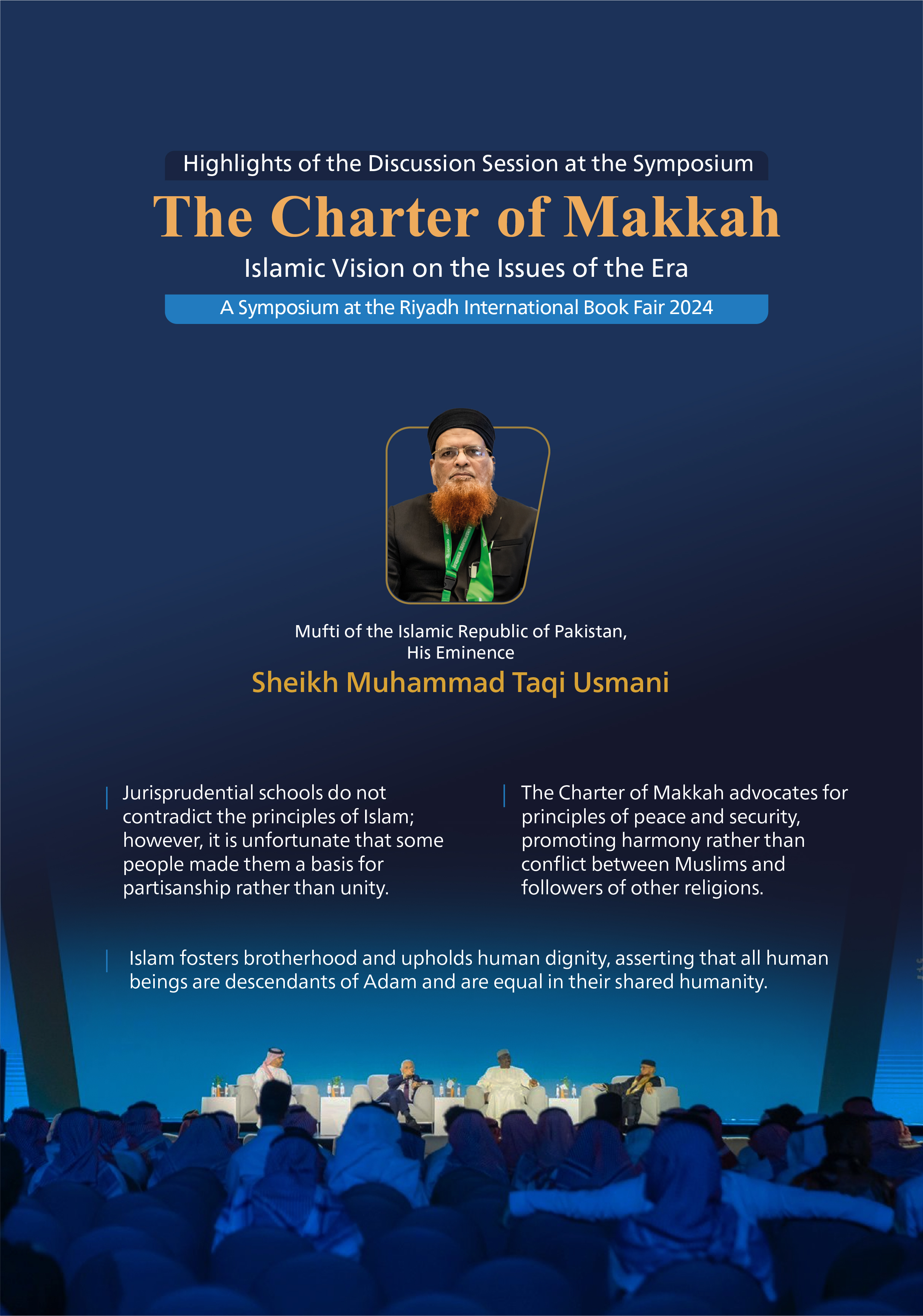 His Eminence Sheikh Muhammad Taqi Usmani, Mufti of the Islamic Republic of Pakistan, participating at the symposium on The Charter Of Makkah: Islamic Vision on the Issues of the Era, at the Riyadh International Book Fair 2024: