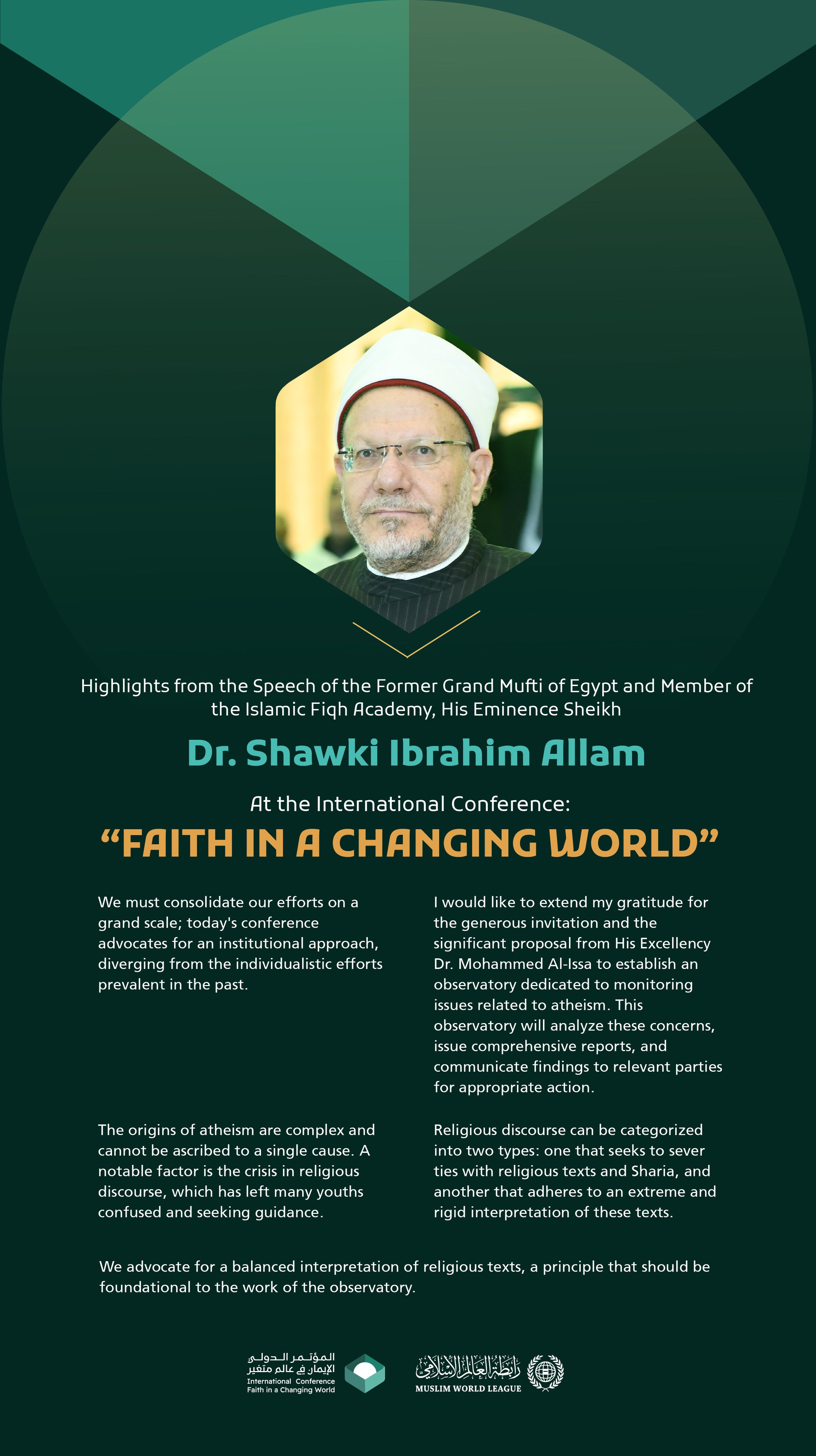 Highlights from the speech of His Eminence Sheikh Dr. Shawki Ibrahim Allam, the Former Grand Mufti of Egypt and Member of the Islamic Fiqh Academy, at the International Conference: “Faith in a Changing World”:
