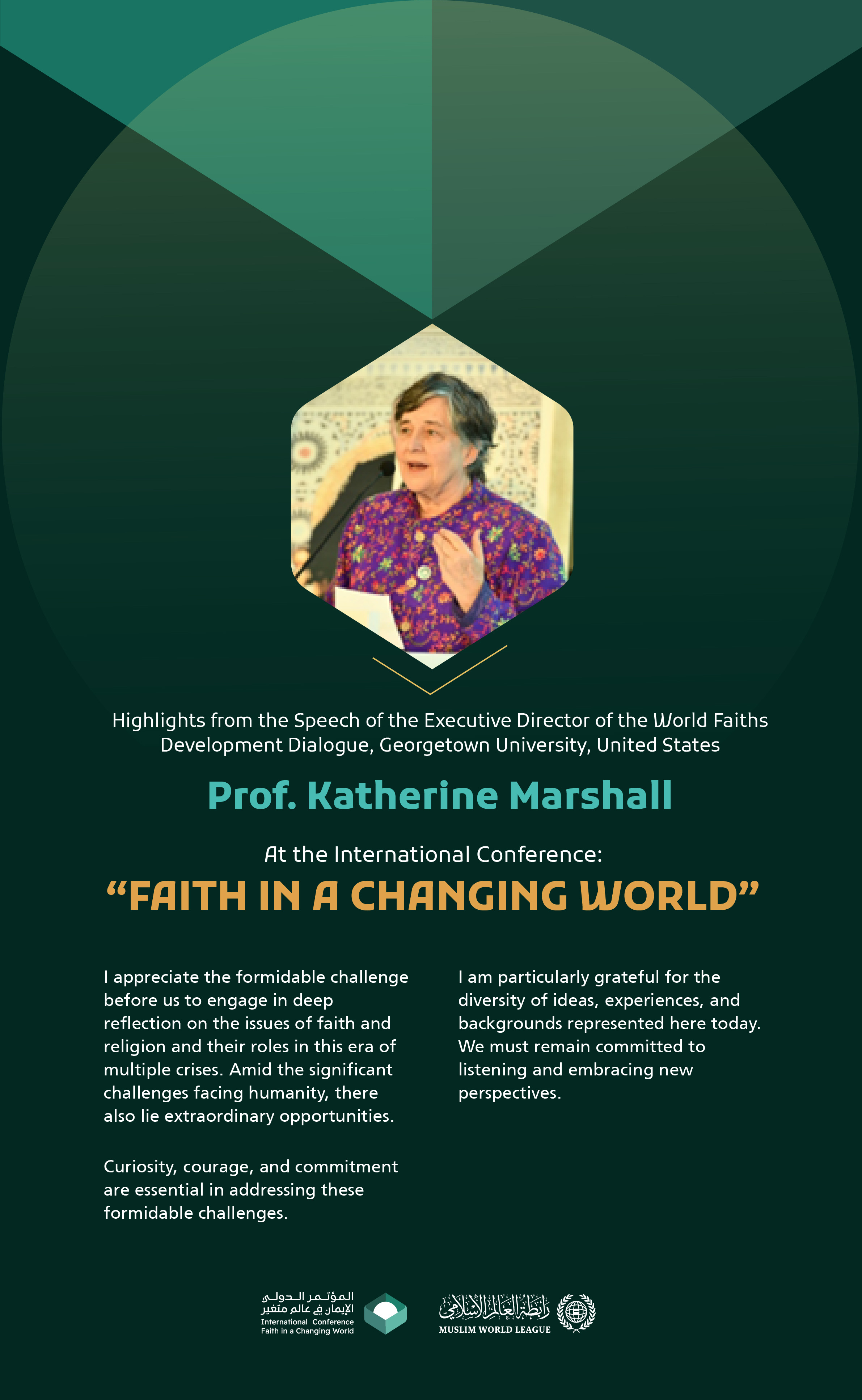 Highlights from the speech of Prof. Katherine Marshall, the Executive Director of the World Faiths Development Dialogue, Georgetown University, United States, at the International Conference: "Faith in a Changing World”: