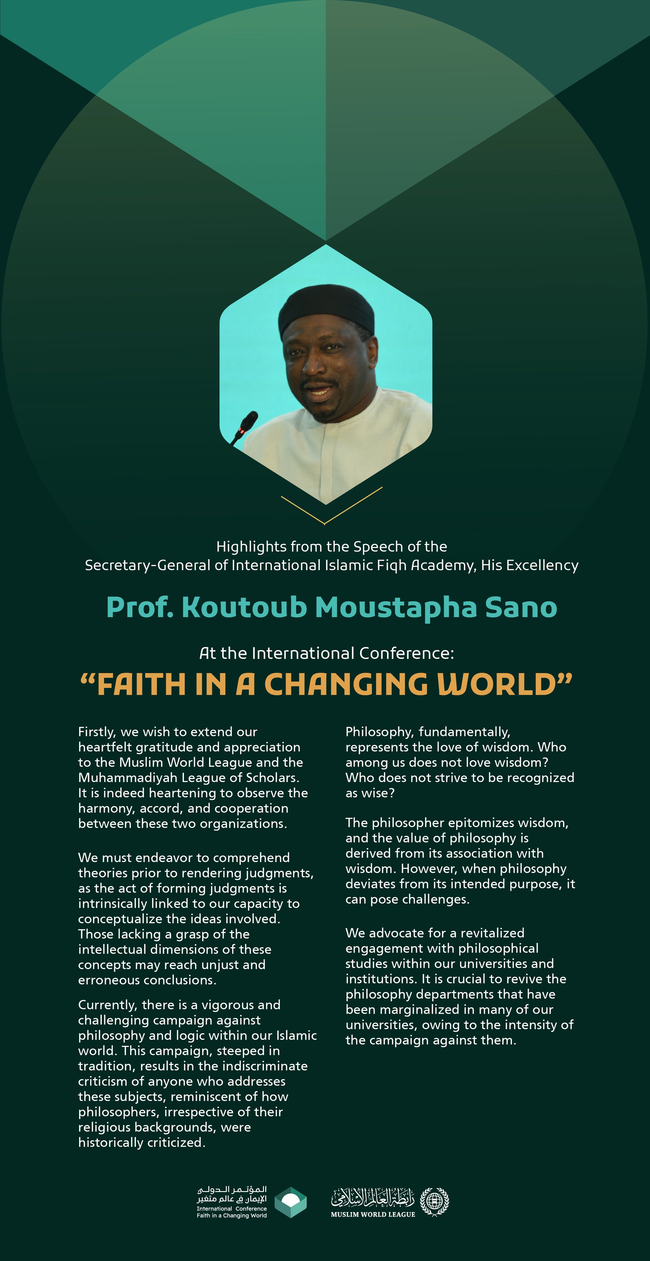 Highlights from the speech of His Excellency Prof. Koutoub Moustapha Sano, the Secretary-General of International Islamic Fiqh Academy, at the International Conference: “Faith in a Changing World”:
