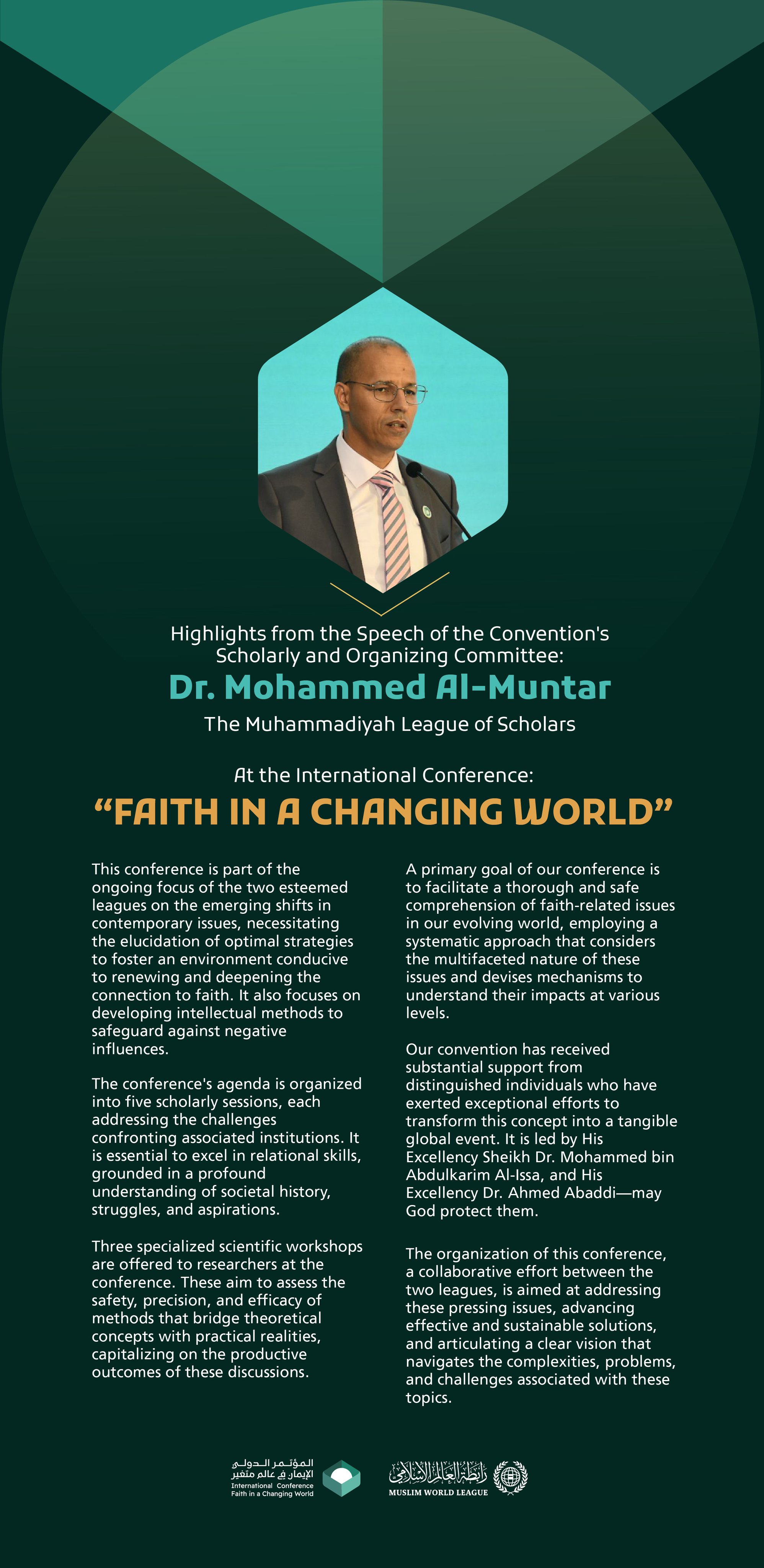 Highlights from the speech of the Convention's Scholarly and Organizing Committee, presented by Dr. Mohammed Al-Muntar, at the International Conference: “Faith in a Changing World”: