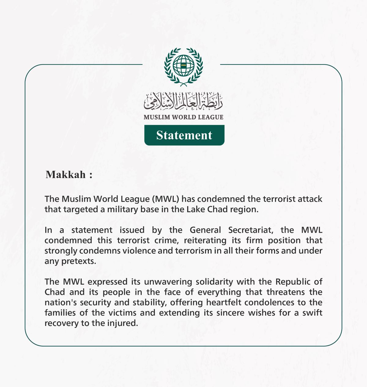 The Muslim World League (MWL) has condemned the terrorist attack that targeted a military base in the Lake Chad region.