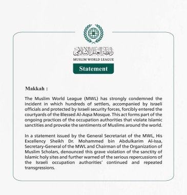 The Muslim World League (MWL) extends its deepest condolences to the government and people of the Republic of Indonesia, as well as to the families of those who lost their lives, were injured, or remain missing as a result of the tragic ferry sinking near the island of Bali.