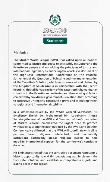 In a statement issued by the General Secretariat, the MWL expressed its sincere solidarity and sympathy with the Indonesian people, particularly the families affected by this painful tragedy. The MWL prays that Allah the Almighty grants the deceased His mercy and the highest ranks of Paradise, bestows a swift recovery upon the injured, and ensures the safe return of the missing to their families.