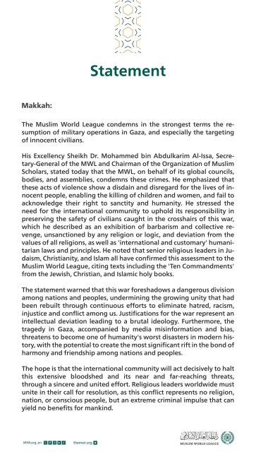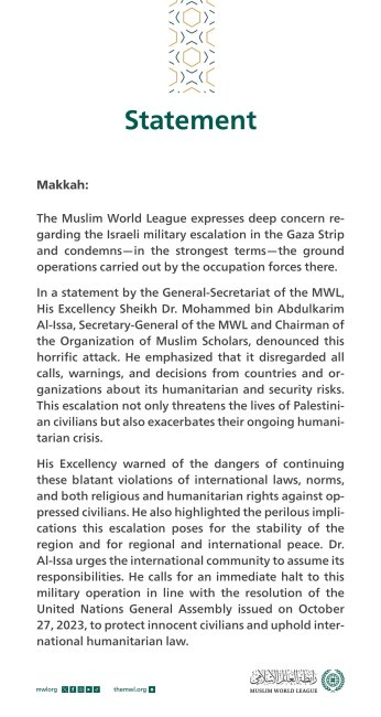 The Muslim World League Condemns Treacherous Israeli Bombing of the Gaza Strip