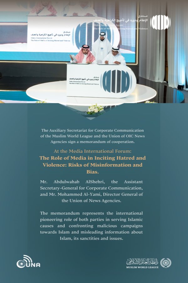 Memorandum of Cooperation between the Auxiliary Secretariat for Corporate Communication of the #MuslimWorldLeague and the Union of OIC News Agencies