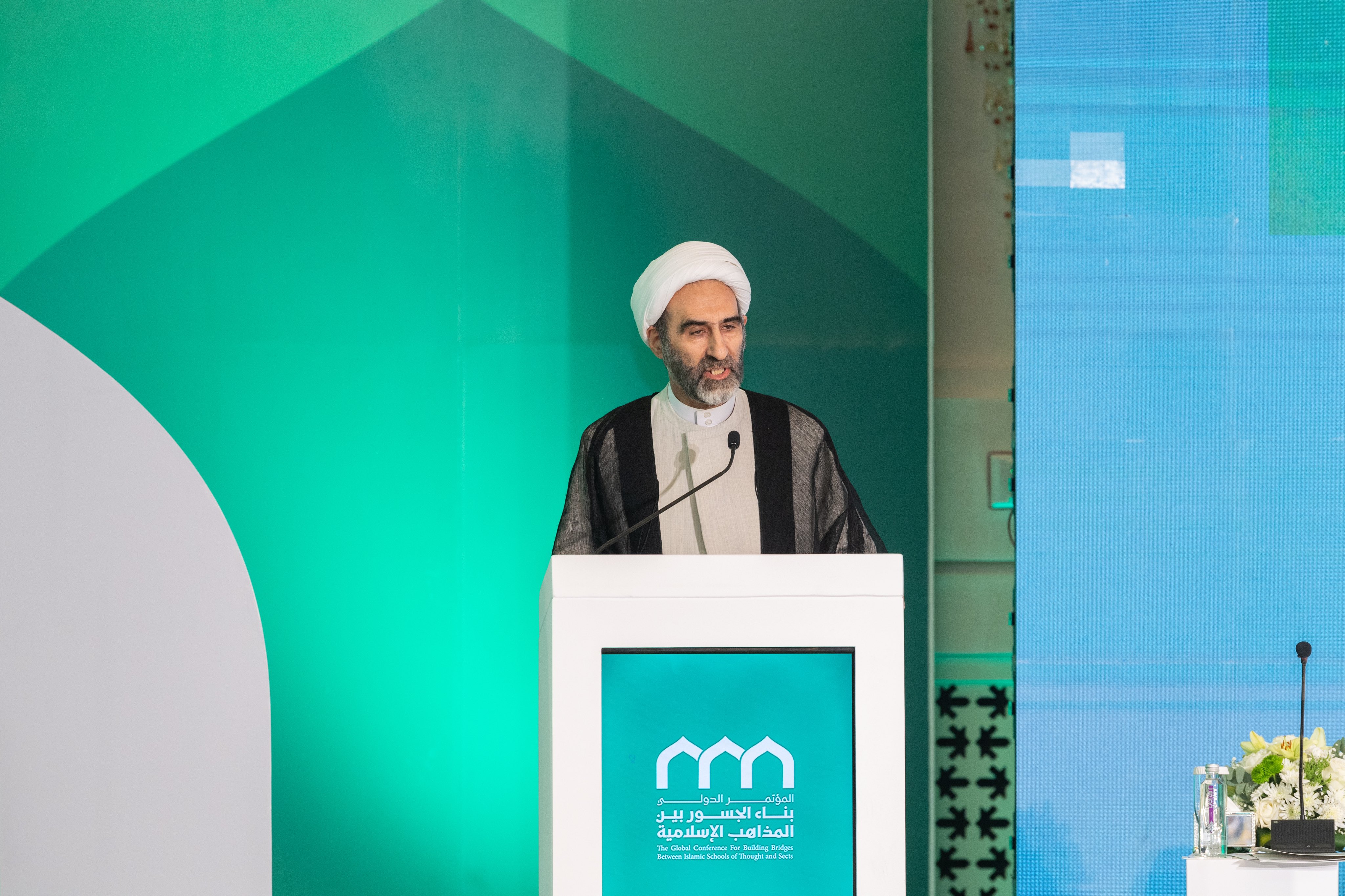 L'Ayatollah el Sheij Ahmed Mobaleghi, miembro del Consejo de expertos de la República Islámica de Irán, durante la sesión de apertura de la conferencia: "Construyendo puentes entre las escuelas islámicas":
