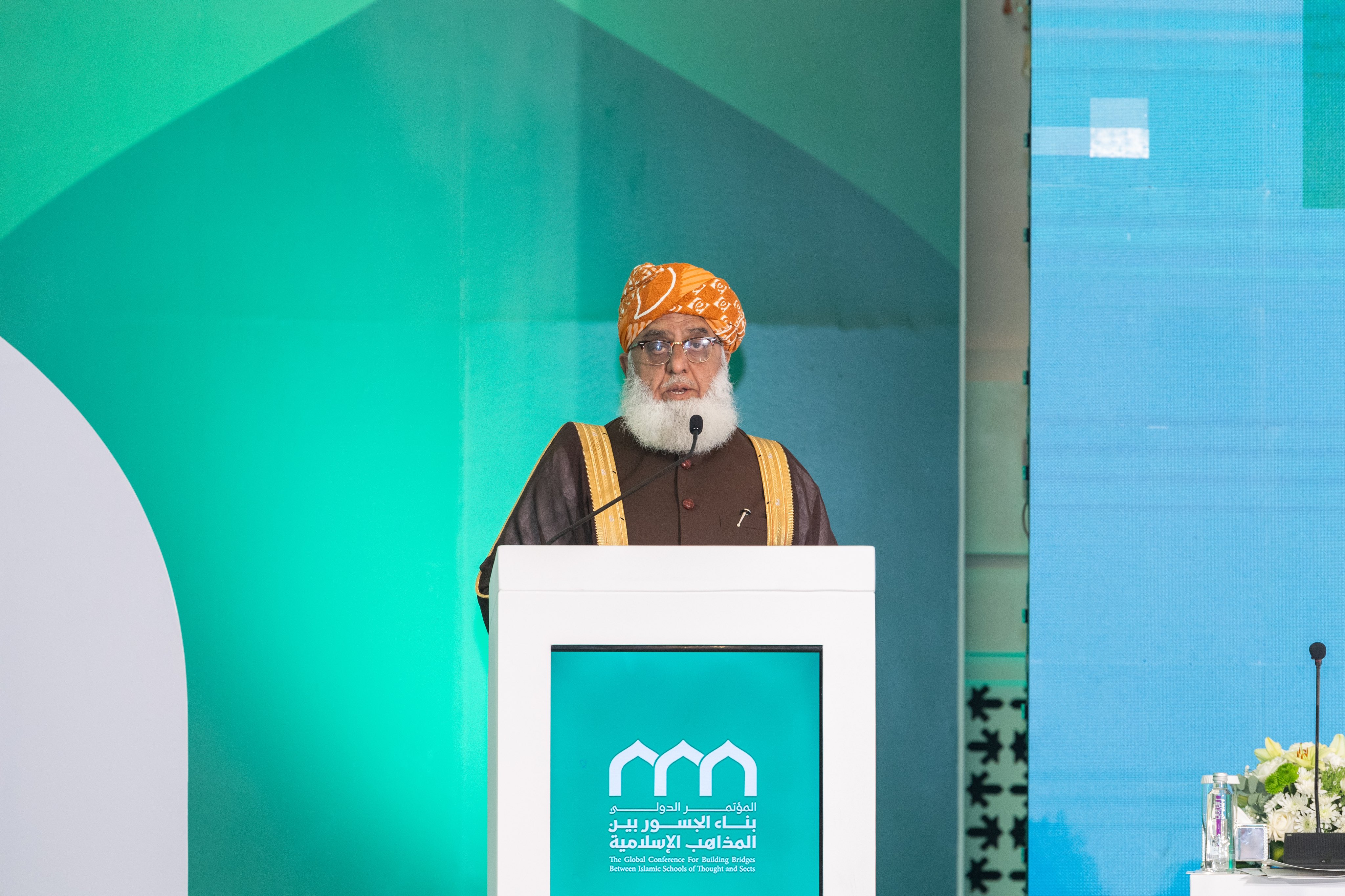 El responsable de la Asociación de Ulemas de la República Islámica de Pakistán, el Sheij Fazl-ur-Rahman bin Mufti Mahmoud, durante la sesión de apertura de la conferencia "Construyendo puentes entre las escuelas islámicas":