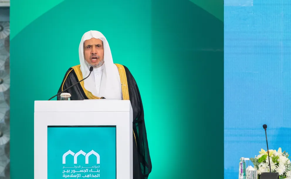 سخنان جناب دبیر کل، و رئیس انجمن علمای مسلمانان، آقای دکتر شیخ محمد بن عبدالکریم العیسی، در سخنرانی خود در افتتاحیه کنفرانس: «ایجاد پل میان مذاهب…