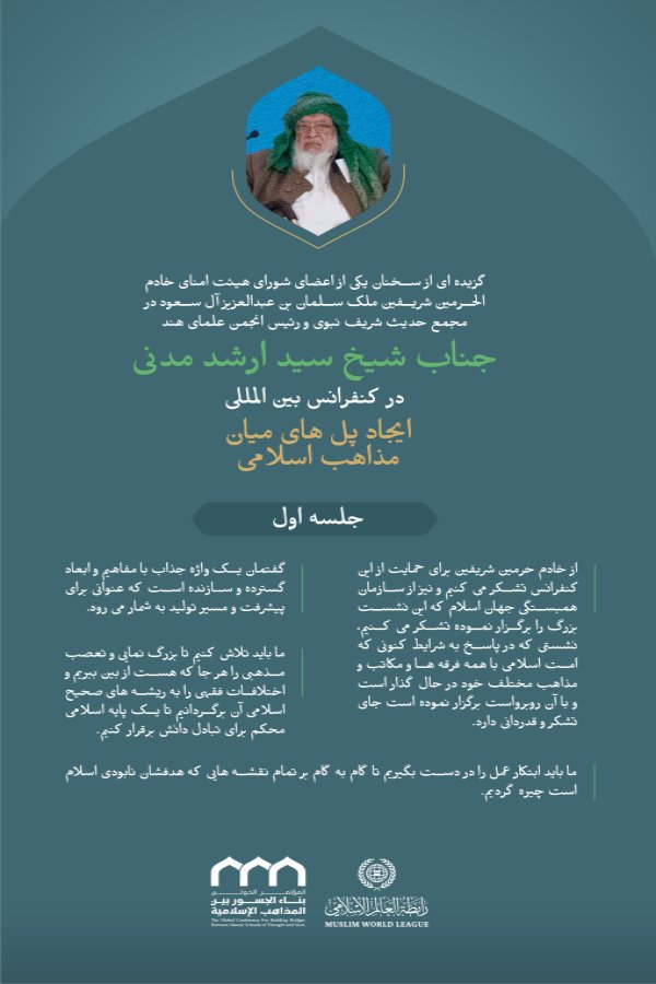 گزیدهای از سخنرانی جناب رئیس انجمن علمای هند، شیخ سید ارشد مدنی در اولین نشست از کنفرانس بینالمللی: " ایجاد پل های میان مذاهب اسلامی…