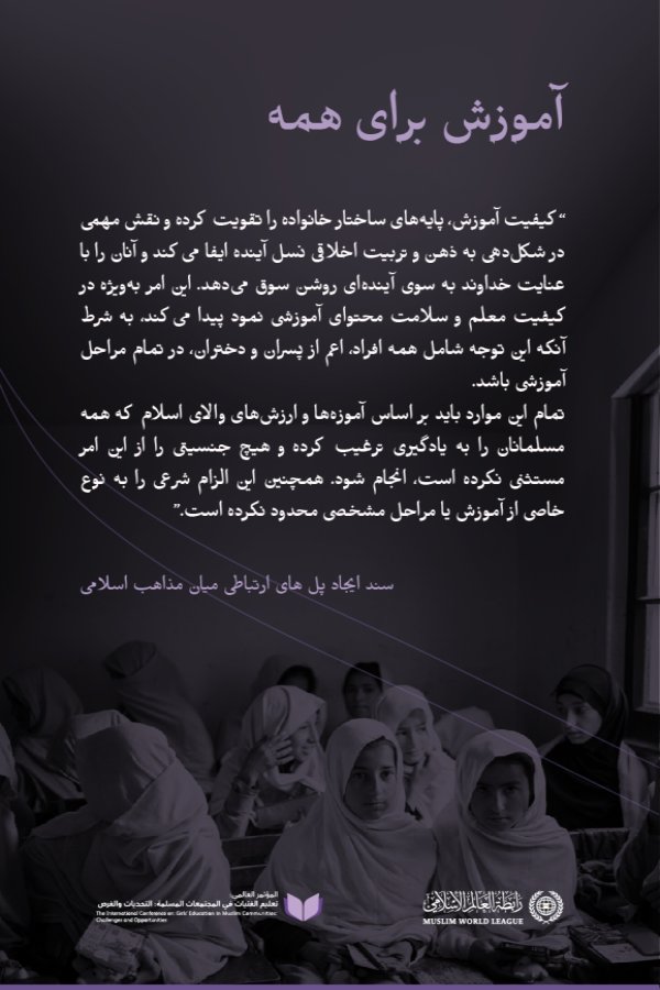 بر پایه آموزههای اسلام، حکمت و ارزشهای والای آن: حق آموزش بدون تبعیض برای تمامی افراد، حقی است که در “سند ایجاد پلهای…