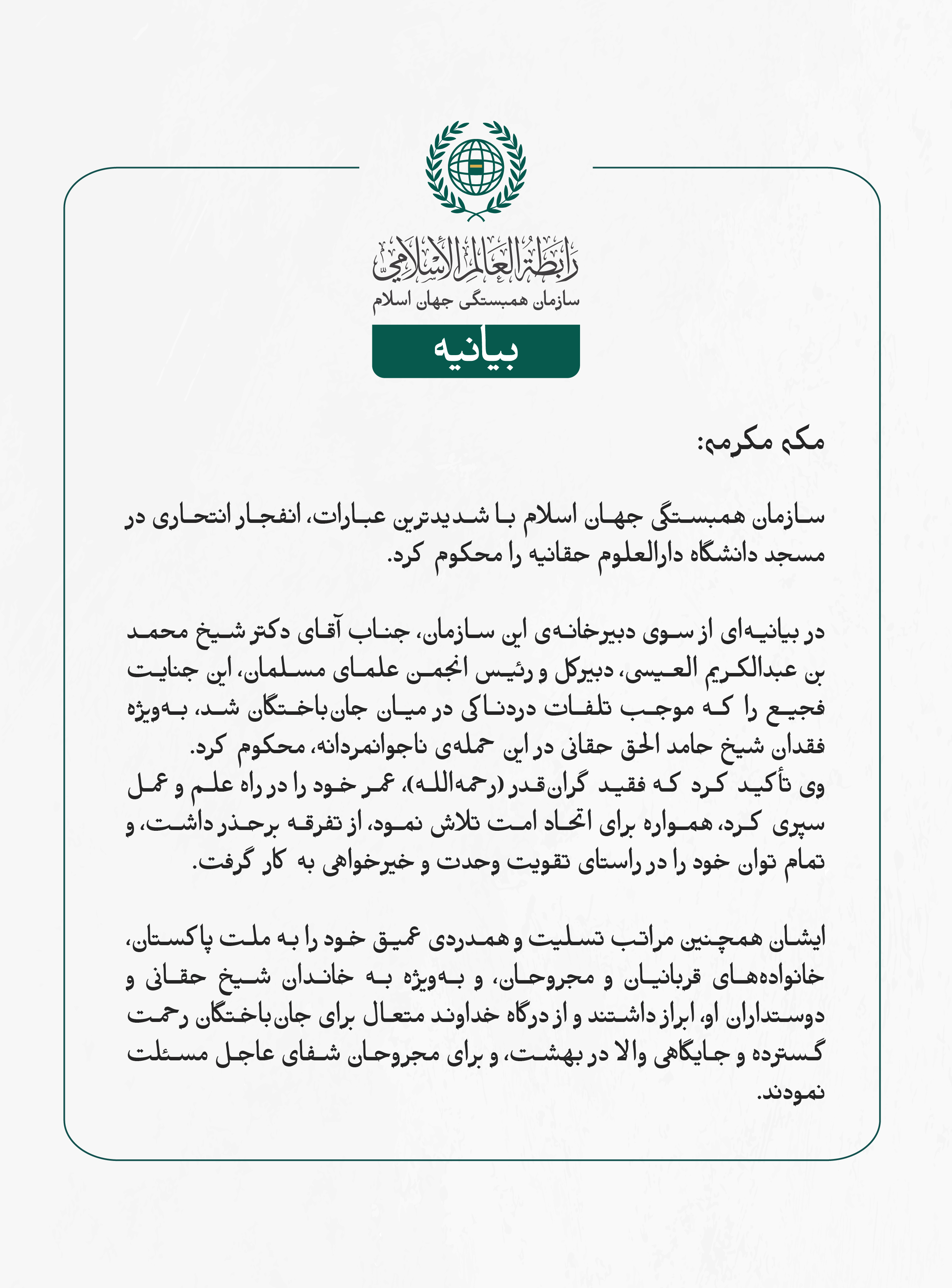 Pernyataan dari Liga Muslim Dunia: یک‌شنبه, 2 مارس 2025 - 10:50
