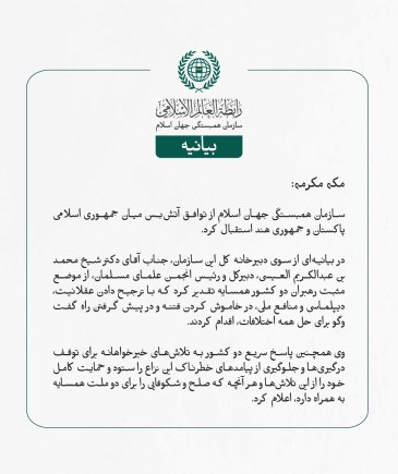 ایشان همچنین بر همبستگی سازمان با ملت سودان در مواجهه با این فاجعه انسانی تأکید کرد و صمیمانهترین مراتب تسلیت و همدردی خود را به خانوادههای قربانیان ابراز داشت و برای مجروحان شفای عاجل آرزو کرد.