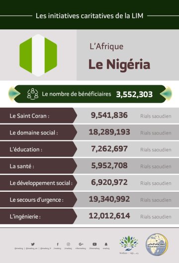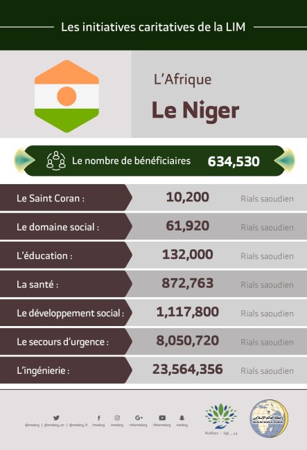 Le nombre total de bénéficiaires au Niger des initiatives de la Ligue Islamique Mondiale s’élève à 634 530 personnes