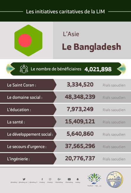 Le nombre total de bénéficiaires au Bangladesh des initiatives de la Ligue Islamique Mondiale s’élève à 4 021 898 personnes.