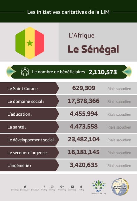Le nombre total de bénéficiaires au Sénégal des initiatives de la Ligue Islamique Mondiale s’élève à 2 110 573 personnes