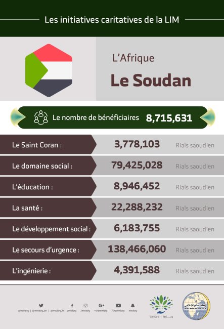 Le nombre total de bénéficiaires au Soudan des initiatives de la Ligue Islamique Mondiale s’élève à 8 715 631 personnes