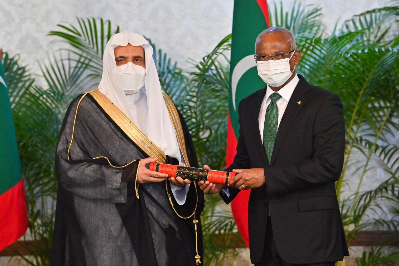 Lors d’une cérémonie officielle en présence de ministres Ibrahim Saleh Président de la République des Maldives remet à Mohamed AIissa l’Ordre d’Honneur de la République pour ses efforts à unir la communauté musulmane ainsi qu’à promouvoir l’harmonie et la paix dans le monde.