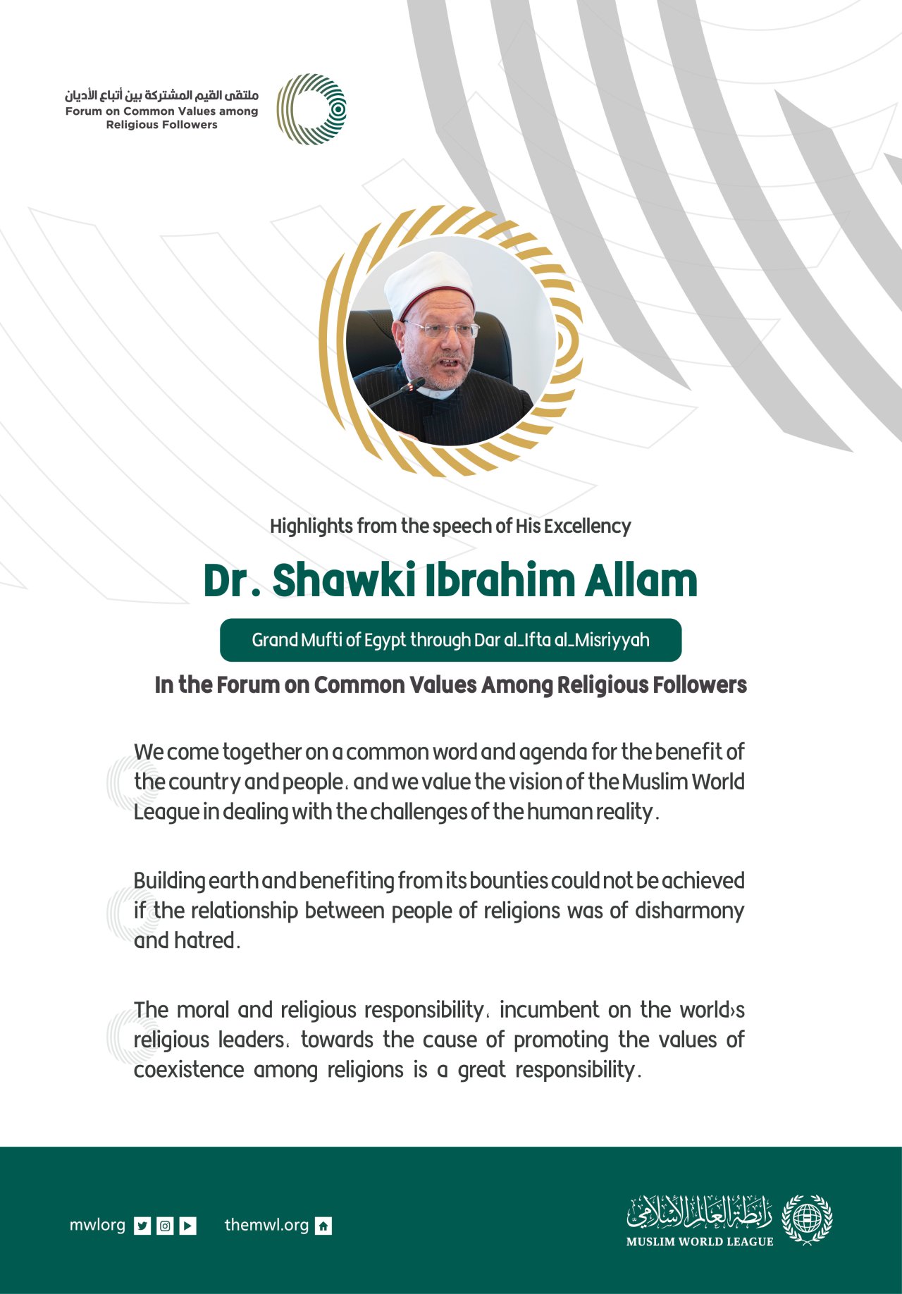Extraits du discours du Grand mufti d’Egypte cheikh Chawki Allam lors du Forum Valeurs Communes Riyad :