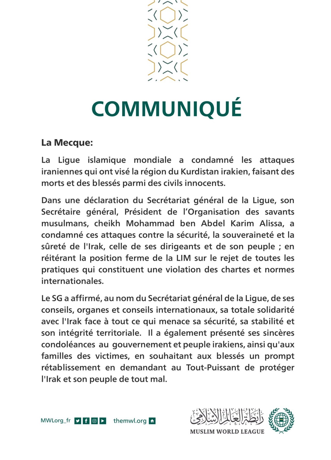 Communiqué de la Ligue Islamique Mondiale : Jeudi 29 septembre 2022 - 20:33