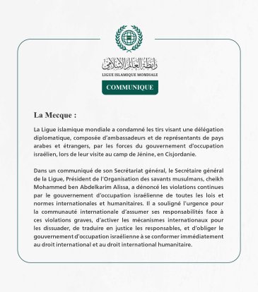 La Ligue islamique mondiale condamne les violations israéliennes qui compromettent la stabilité et la paix, et appelle à l’application des résolutions internationales ainsi…