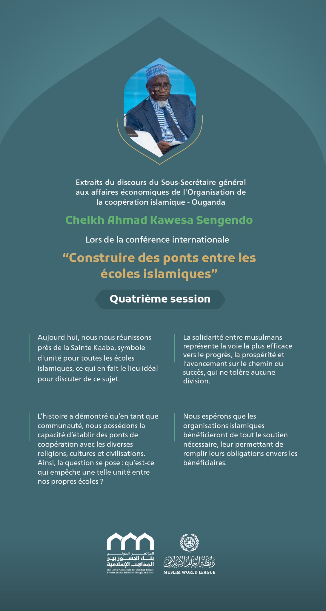 Extraits du discours du Sous Secrétaire général aux affaires économiques de l'Organisation de la coopération islamique - Ouganda Cheikh Ahmad Kawesa Sengendo lors de la conférence internationale « Construire des ponts entre les écoles islamiques » :