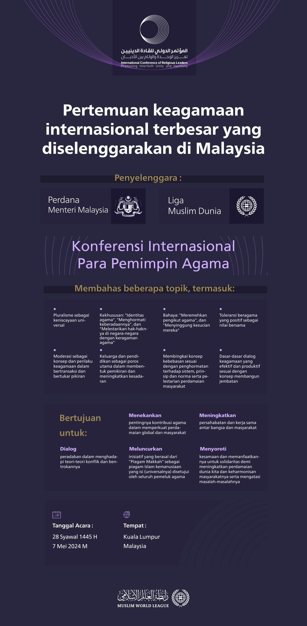 Diselenggarakan atas kerja sama antara Perdana Menteri Malaysia dan Liga Muslim Dunia.. Ibu kota Kuala Lumpur, menjadi tuan rumah "Konferensi Internasional Para Pemimpin Agama". Untuk informasi lebih lanjut di sini:
