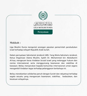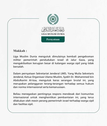 Pernyataan dari Liga Muslim Dunia: Kamis, Juni 13, 2024 - 13:40
