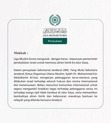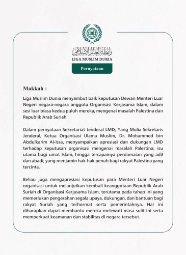 Pernyataan dari Liga Muslim Dunia: Sabtu, September 14, 2024 - 07:44