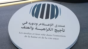Intervensi siaran langsung dari lapangan di Gaza oleh sejumlah jurnalis saat menjalankan tugasnya untuk meliput peristiwa, pada sesi pembukaan Forum Internasional “Media dan Perannya dalam Menghasut Kebencian dan Kekerasan” di Jeddah.